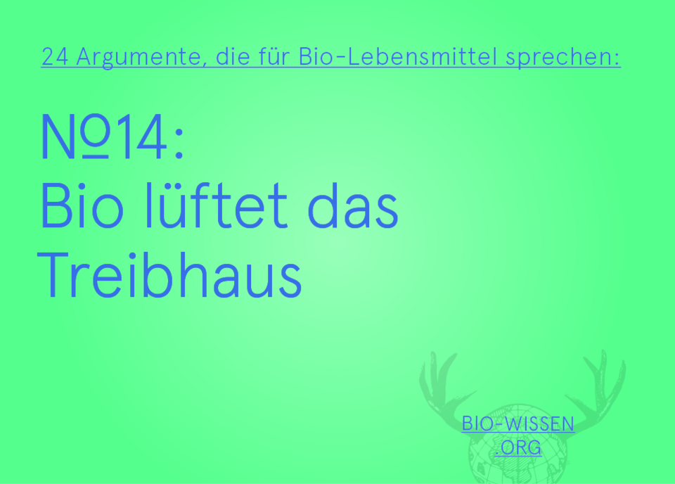Weltweit ist die Lebensmittelproduktion, also Landwirtschaft und Ernährung, mit bis zu 30 % am Klimawandel beteiligt. Der Großteil der Treibhausgase entsteht bei der landwirtschaftlichen Produktion. Intensive, flächenunabhängige Tierhaltung, Produktion und Einsatz mineralischer Stickstoffdünger sowie Landnutzungsänderungen – also die Umwandlung von Grünland oder (Tropen)Wald in Ackerland, um z. B. Futtermittel wie Soja anzubauen – sorgen für hohe Treibhausgasemissionen. Allein die Produktion der 125 Mio. Tonnen Stickstoffdünger, die weltweit pro Jahr erzeugt werden, setzen 800 Mio. Tonnen CO2 frei. Bei einem Umstieg der österreichischen Landwirtschaft auf 100 % Biolandbau könnten nur durch den damit verbundenen Verzicht auf die Herstellung schnelllöslicher mineralischer Stickstoffdünger pro Jahr fast eine 1 Mio. t CO2 eingespart werden. Dies entspricht 1,2 % der nationalen bzw. 12 % der landwirtschaftlichen Treibhausgasemissionen Österreichs. Der Verzicht auf mineralische Stickstoffdünger, die Bindung großer Mengen an CO2 im Boden durch Humusaufbau, eine tiergerechte Haltung sowie der sparsame Einsatz nicht erneuerbarer Ressourcen tragen zur guten Klimabilanz des Biolandbaus bei: Durch biologische Bewirtschaftung können bis zu 60 % an klimarelevanten CO2-Emissionen eingespart werden. Argument genug, die Lösungskompetenz der Biolandwirtschaft in der aktuellen Klimadebatte verstärkt zu berücksichtigen.
