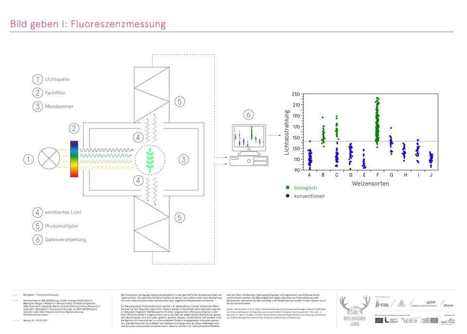 Rechteinhaberin: BIO-WISSEN.org / Grafik: Andreas Pawlik (dform), Maximilian Fabigan / Redaktion: Reinhard Gessl, Elisabeth Klingbacher (FIBL Österreich), Alexander Martos (Science Communications Research) / Copyright: »Bild geben I: Fluoreszenzmessung« von BIO-WISSEN.org ist lizenziert unter einer Creative Commons Namensnennung 4.0 International Lizenz.