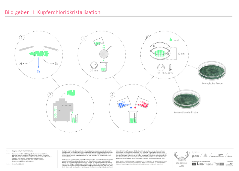 Rechteinhaberin: BIO-WISSEN.org / Grafik: Andreas Pawlik (dform), Maximilian Fabigan / Redaktion: Reinhard Gessl, Elisabeth Klingbacher (FIBL Österreich), Alexander Martos (Science Communications Research) / Copyright: »Bild geben II: Kupferchloridkristallisation« von BIO-WISSEN.org ist lizenziert unter einer Creative Commons Namensnennung 4.0 International Lizenz.