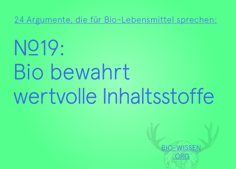 FiBL (Hrsg.) (2007): 90 Argumente für den Biolandbau; BÖLW (2009): 28 Antworten zum Stand des Wissens rund um Öko-Landbau und Bio-Lebensmittel;www.qlif.org; Graham-Rowe, D. (2007): Organic tomatoes have more antioxidants. New Scientist 2611; Baranski, M. et al. (2014) Higher antioxidant concentrations and less cadmium and pesticide residues in organically-grown crops: a systematic literature review and meta-analyses. British Journal of Nutrition.