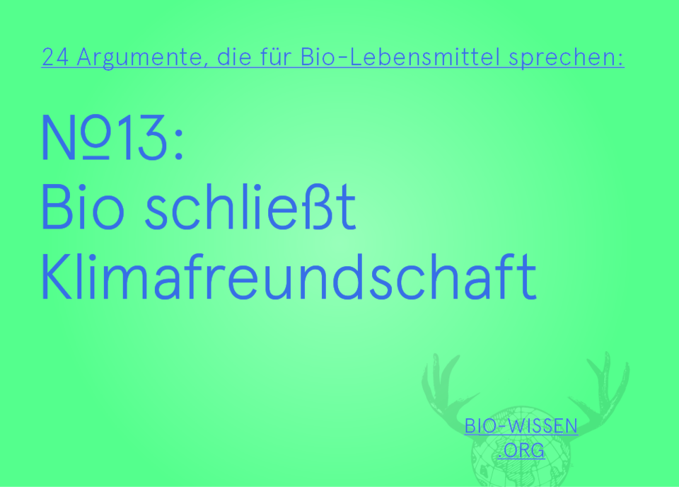 Böden spielen im Klimaschutz eine wesentliche Rolle, da sie große Mengen an Kohlenstoff speichern können. Ob Kohlenstoff gebunden oder freigesetzt wird hängt u. a. von Bewirtschaftungsweise, Humusgehalt und Aktivität der Bodenorganismen ab. Humusverlust, Bodenerosion und Landnutzungsänderungen sind für hohe CO2-Emissionen verantwortlich. Im Biolandbau kommt der Erhaltung und Steigerung der Bodenfruchtbarkeit ein besonders hoher Stellenwert zu. Aufgrund höherer Humusgehalte können Bio-Böden daher große Mengen an CO2 speichern (durchschnittlich 400-450 kg CO2/ha und Jahr), während intensiv genutzte Böden bis zu 200 kg CO2/ha in die Atmosphäre freisetzen. Die intensive Bodennutzung verursacht aber nicht nur Kohlendioxid-, sondern auch hohe, besonders klimawirksame Lachgasemissionen (N2O). So gerät bei intensiver Stickstoffdüngung der überschüssige Stickstoff nicht nur als Nitrat ins Grundwasser, sondern – durch den mikrobiellen Umbau der Stickstoffverbindungen – auch als N2O in die Atmosphäre. Der Biolandbau bietet eine klimafreundliche Alternative: Er speichert nicht nur große Mengen Kohlenstoff im Boden, durch den Verzicht auf schnelllösliche Mineraldünger weist er auch wesentlich geringere Lachgasemissionen auf als die konventionelle Landwirtschaft.