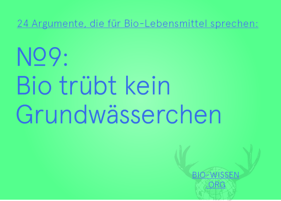 Eine flächengebundene Tierhaltung, der Verzicht auf schnelllösliche mineralische Düngemittel und chemisch-synthetische Pflanzenschutzmittel sorgen in Verbindung mit vielfältigen Fruchtfolgen, schonender Bodenbearbeitung und einer möglichst ganzjährigen Bodenbedeckung dafür, dass auf biologisch bewirtschafteten Flächen deutlich weniger Schad- und Nährstoffe ausgewaschen werden als auf konventionellen Vergleichsflächen. So kann unter anderem die Nitratauswaschung ins Grundwasser durch biologische Bewirtschaftung um bis zu 60 % verringert werden. Biologische Landwirtschaft trägt daher aktiv zum Schutz von Grundwasser und Oberflächengewässern bei.