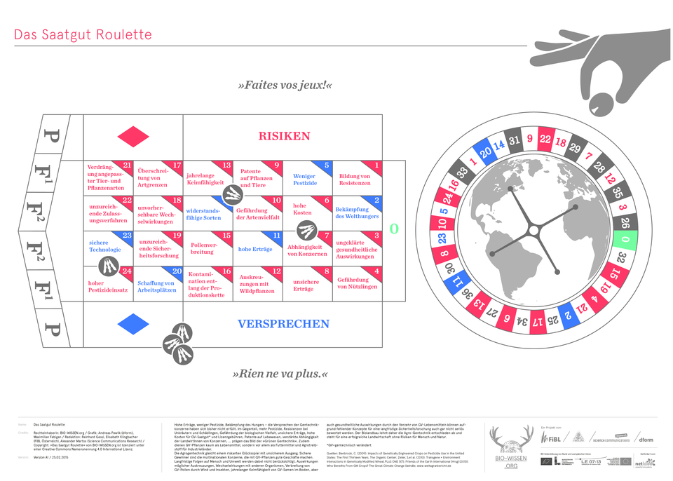Rechteinhaberin: BIO-WISSEN.org / Grafik: Andreas Pawlik (dform), Maximilian Fabigan / Redaktion: Reinhard Gessl, Elisabeth Klingbacher (FIBL Österreich), Alexander Martos (Science Communications Research) / Copyright: »Das Saatgut Roulette« von BIO-WISSEN.org ist lizenziert unter einer Creative Commons Namensnennung 4.0 International Lizenz.