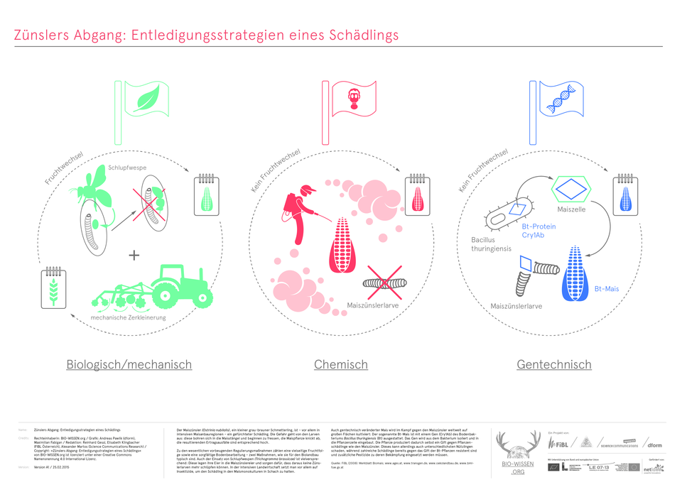 Rechteinhaberin: BIO-WISSEN.org / Grafik: Andreas Pawlik (dform), Maximilian Fabigan / Redaktion: Reinhard Gessl, Elisabeth Klingbacher (FIBL Österreich), Alexander Martos (Science Communications Research) / Copyright: »Zünslers Abgang: Entledigungsstrategien eines Schädlings« von BIO-WISSEN.org ist lizenziert unter einer Creative Commons Namensnennung 4.0 International Lizenz.